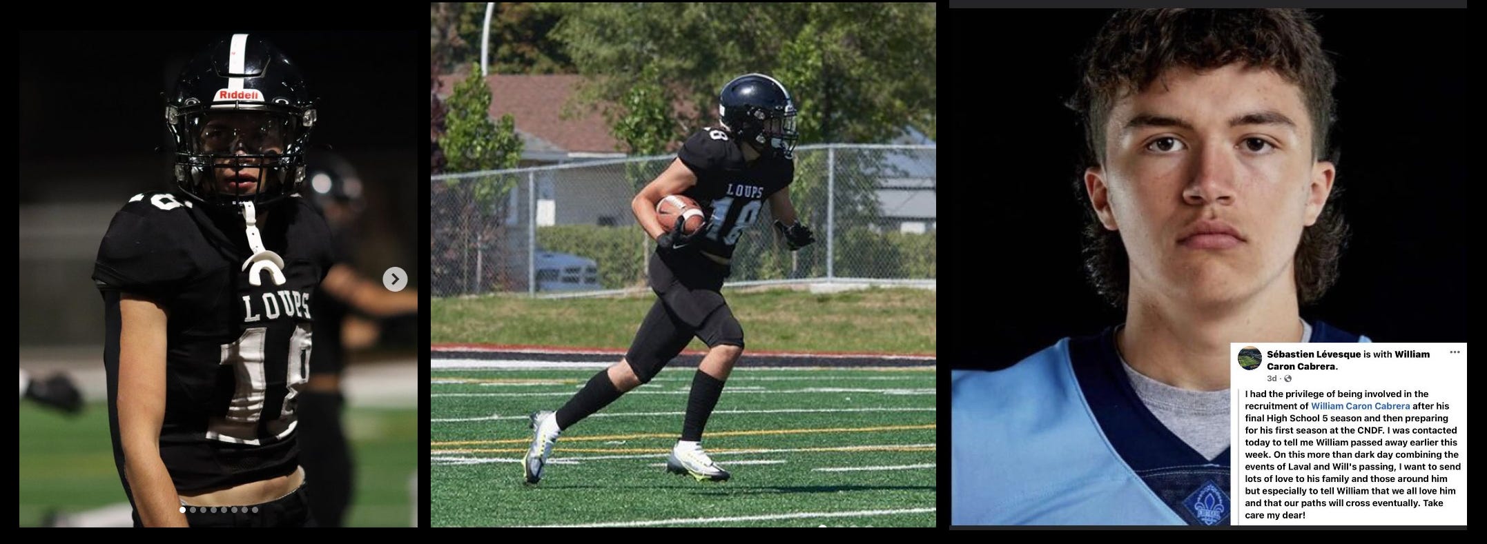“The Wolves of Curé-Antoine-Labelle high school are in mourning. They announced the death of their player William Caron-Cabrera earlier in the week of February 6.
