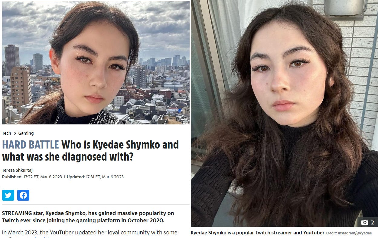 A few days ago, on March 2, 2023, Kyedae Shymko, a 21 year old Japanese-Canadian Twitch streamer with 2.2 million followers (and 1 million on Twitter), announced that she was diagnosed with cancer - Acute Myeloid Leukemia (click here)