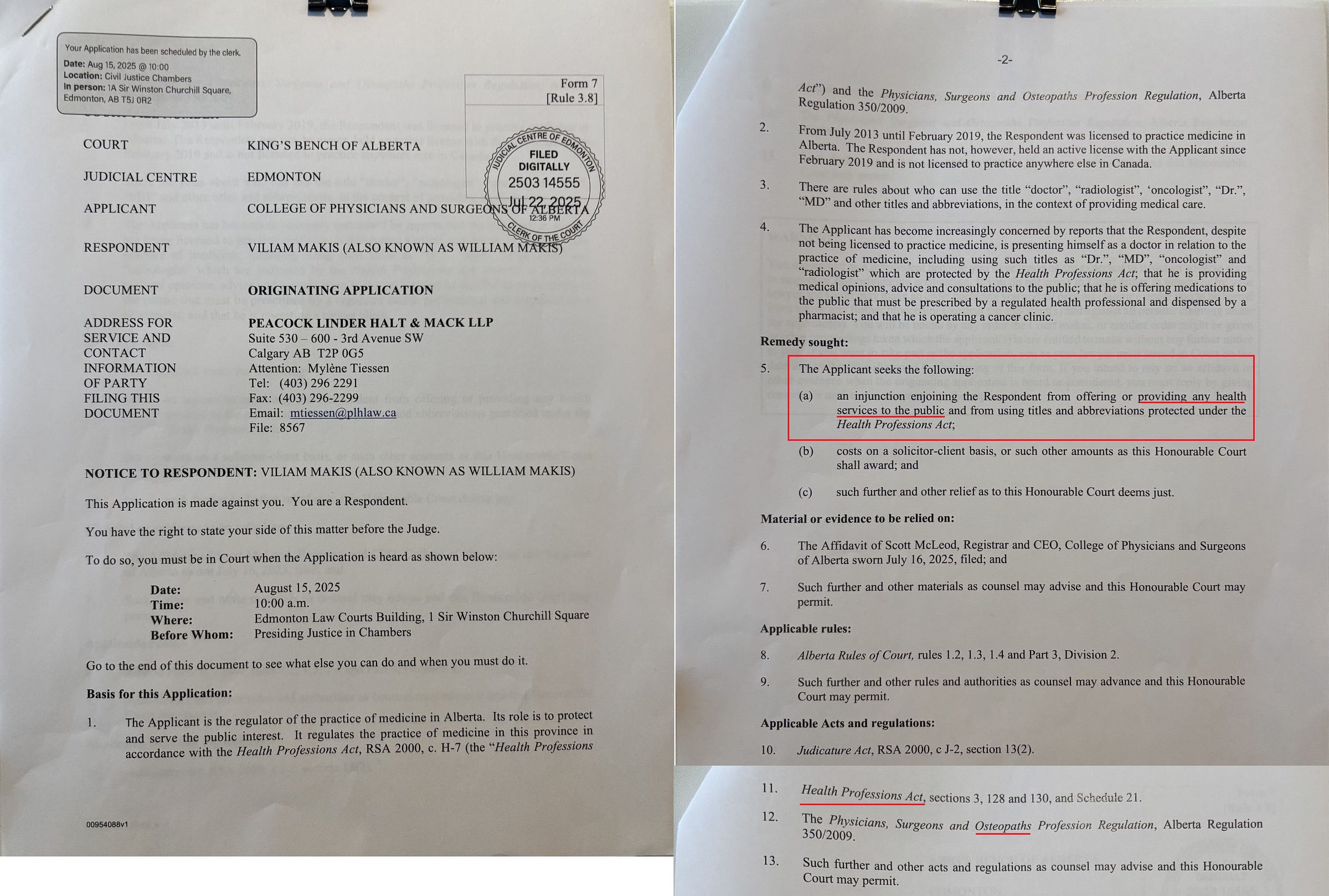The Court Application was brought by Danielle Smith's bureaucrat, top Pedophile Leader and Registrar of College of Physicians and Surgeons of Alberta: