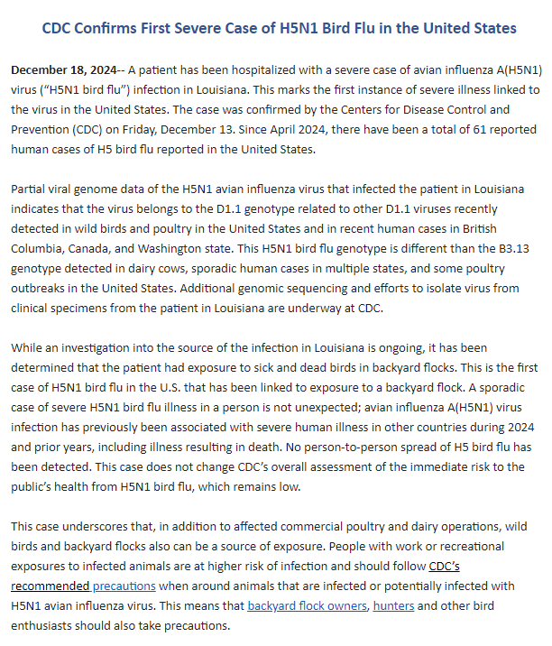 BREAKING NEWS: CDC declares first "severe case" of Influenza H5N1 in the US and California declares State of Emergency over bird flu on Dec.18, 2024 - they're going to do it again!