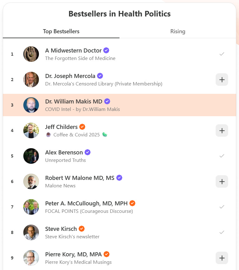 BREAKING NEWS: COVID Intel rises to #3 Medical Substack in the world!