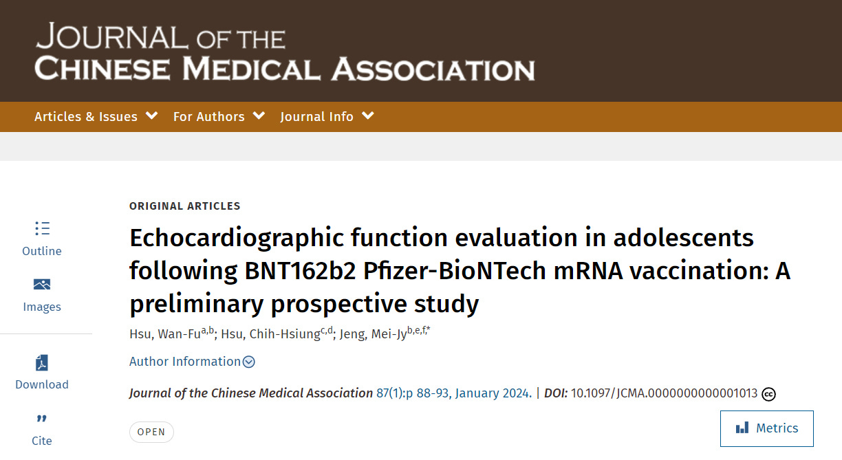 Jan.2024 - Echocardiographic function evaluation in adolescents following BNT162b2 Pfizer-BioNTech mRNA vaccination: A preliminary prospective study