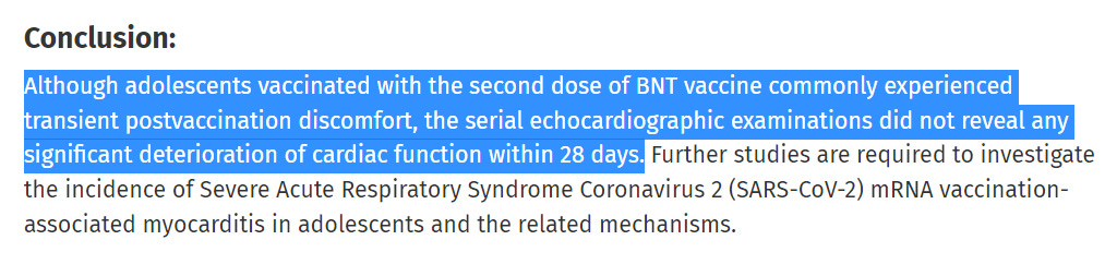 “this prospective study assessed clinical conditions and myocardial function using serial echocardiography before and after the second dose of the BNT (Pfizer) vaccine in adolescents aged 12 to 15 years