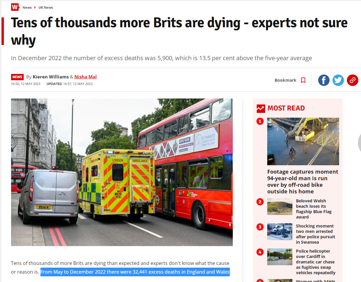 Excess Deaths in the UK - 10,000s more Brits are dying - experts not sure why ?! I have an idea. This trend of excess deaths is accelerating in 2023 and that is very bad news.