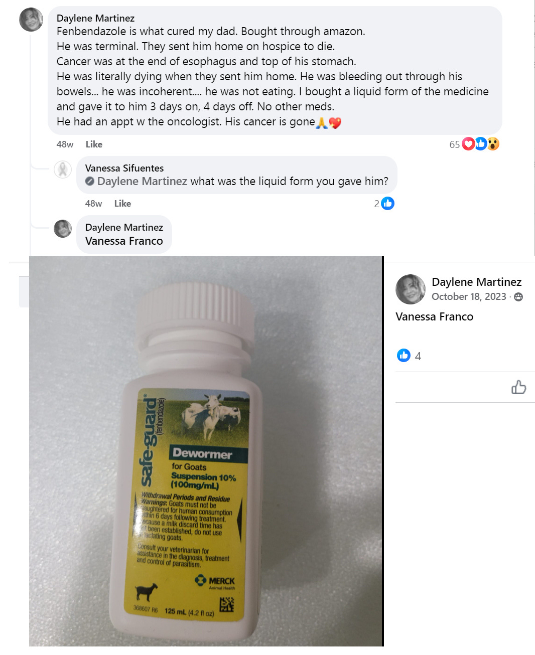 Fenbendazole success story for a patient sent home to die from Esophageal Cancer (by Daylene Martinez Oct.2023)