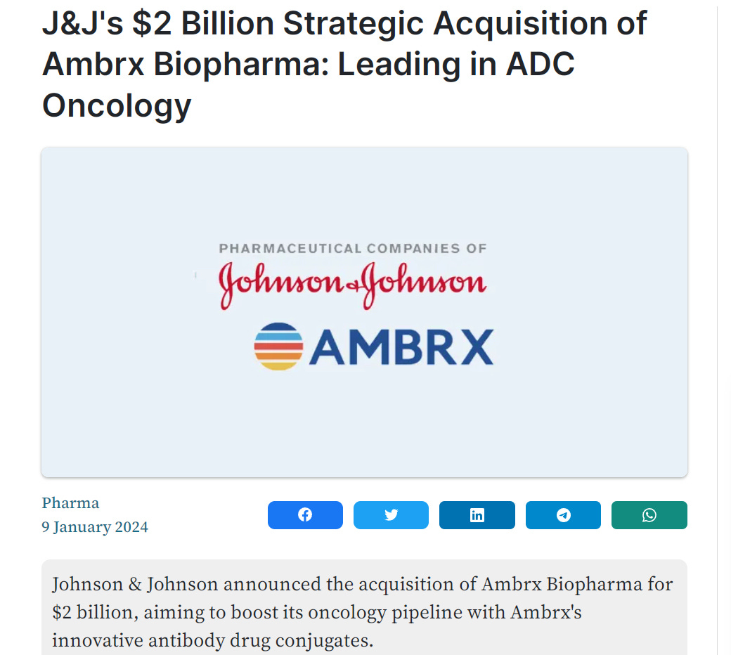 Johnson & Johnson to acquire $2 billion drug developer "Ambrx Biopharma" to treat Turbo Cancers with same tech as Pfizer's $43 billion Seagen acquisition. Both set their sights on 2025 Cancer TSUNAMI