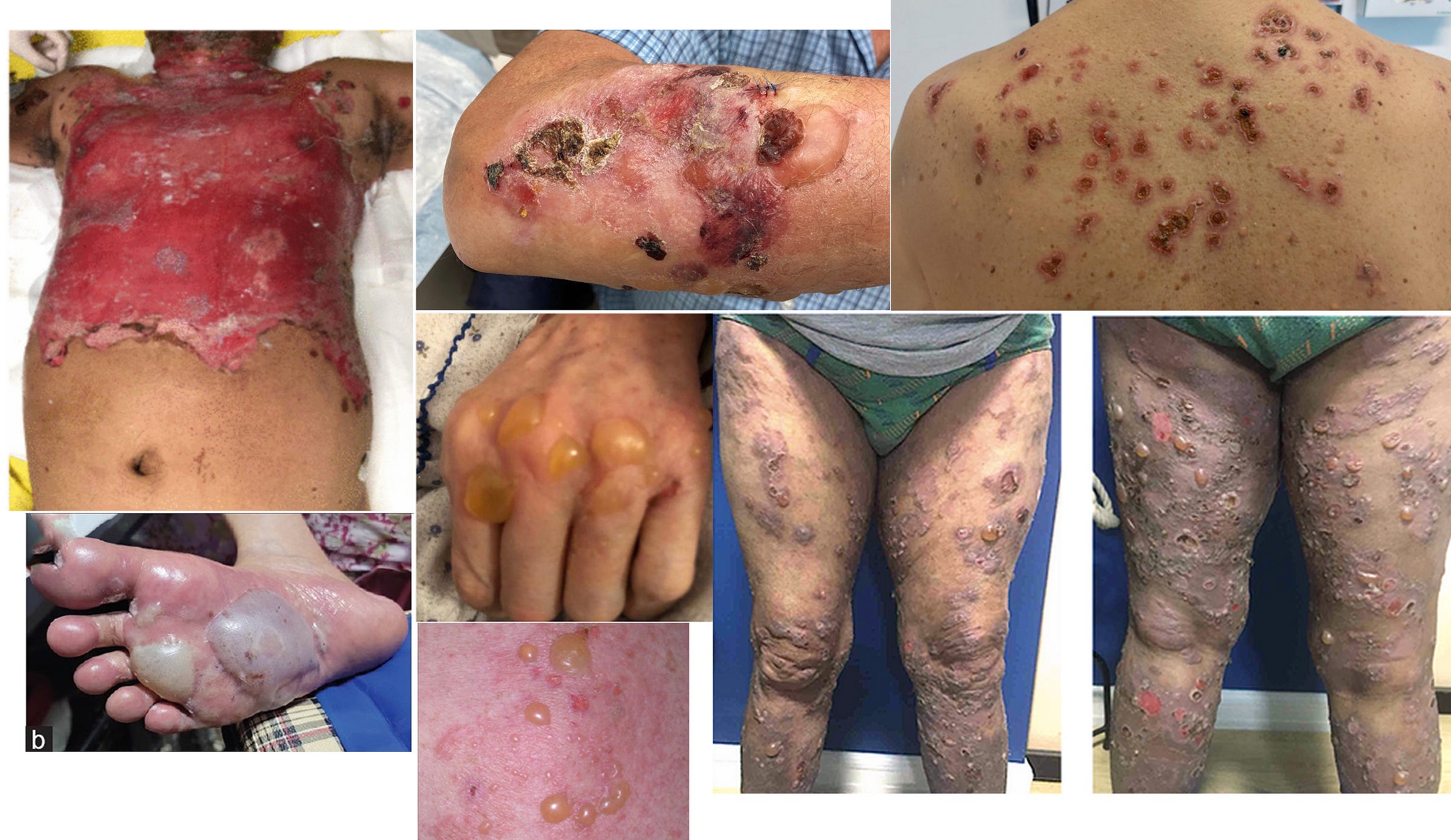 one week later he developed painful vesicles and erosions that progressed rapidly over his trunk and limbs, involving 30% of total body surface area.