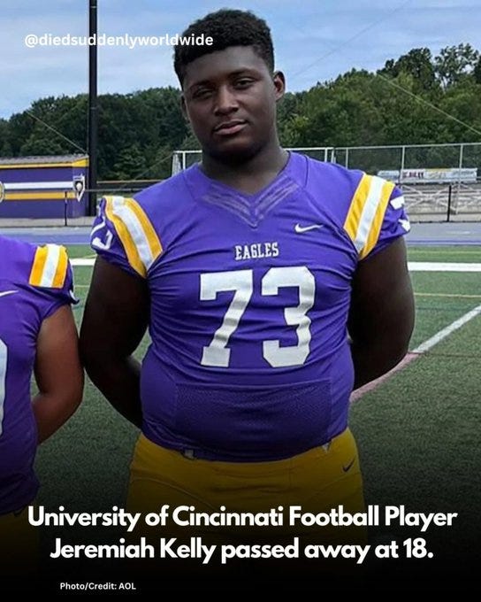 mRNA Injury Stories - University of Cincinnati Football player 18 year old Jeremiah Kelly died suddenly in his sleepWilliam MakisAug 03, 2025∙ Paid862111ShareContinue reading this post for free, courtesy of William Makis.Claim my free postOr purchase a paid subscription.
