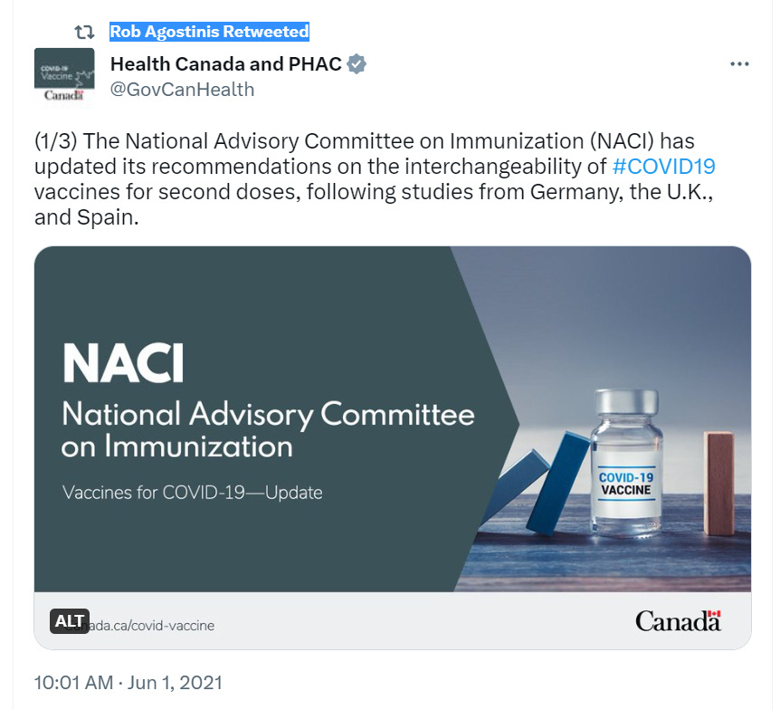 Dr.Agostinis was a big fan of the Health Canada mix and match COVID-19 vaccine program in June 2021: