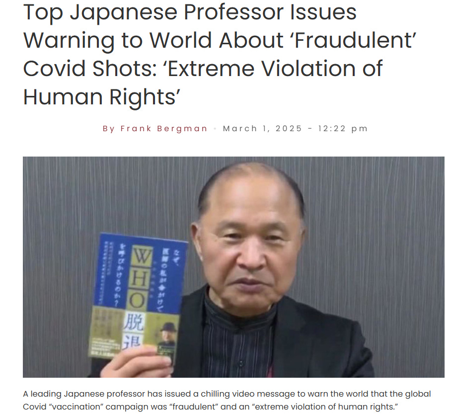 NEWS: Top Japanese Professor Issues Warning to World About ‘Fraudulent’ Covid Shots: ‘Extreme Violation of Human Rights’William MakisApr 18, 2025∙ Paid1742230ShareContinue reading this post for free, courtesy of William Makis.Claim my free postOr purchase a paid subscription.