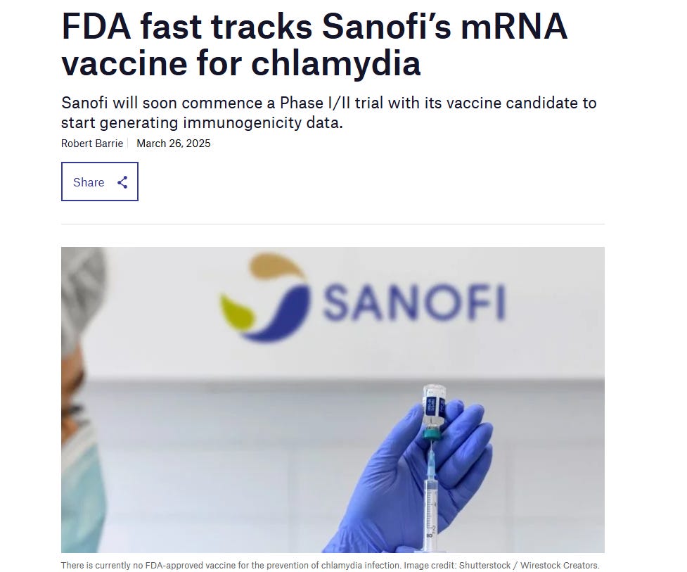 NEWS: FDA fast tracks Sanofi’s mRNA vaccine for chlamydia (Sanofi has not released any information on what kind of mRNA technology it is!)William MakisApr 17, 2025∙ Paid1012411ShareContinue reading this post for free, courtesy of William Makis.Claim my free postOr purchase a paid subscription.