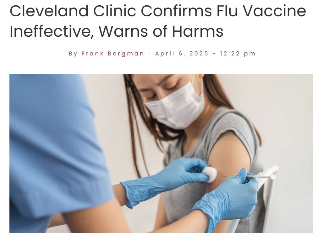NEWS: Cleveland Clinic Confirms Flu Vaccine Ineffective, Warns of HarmsWilliam MakisApr 20, 2025∙ Paid1801943ShareContinue reading this post for free, courtesy of William Makis.Claim my free postOr purchase a paid subscription.
