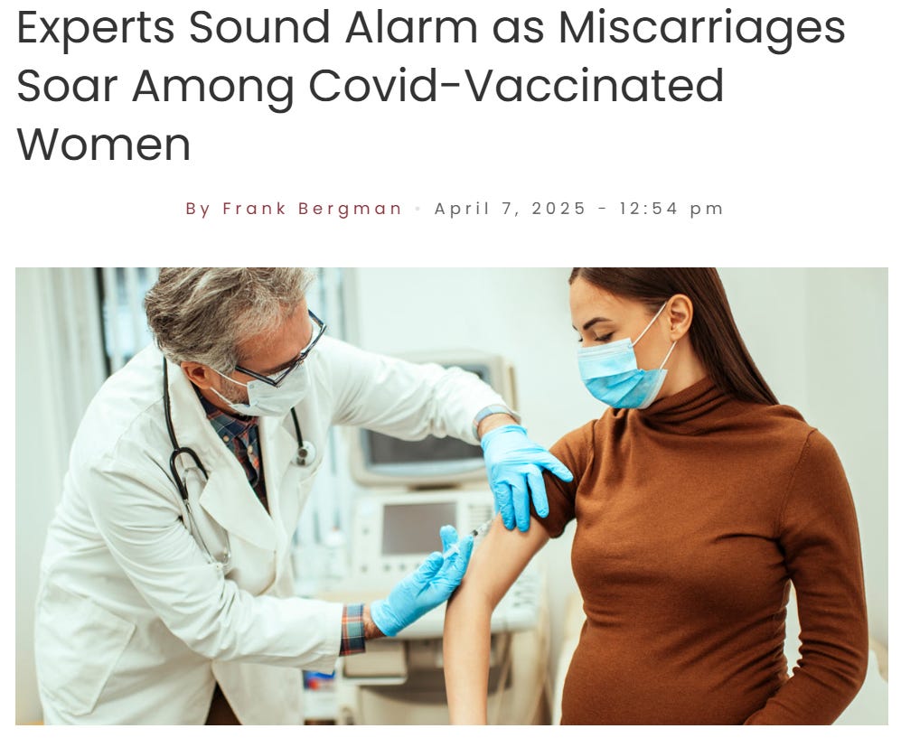 NEWS: Experts Sound Alarm as Miscarriages Soar Among Covid-Vaccinated WomenWilliam MakisMay 19, 2025∙ Paid1331128ShareContinue reading this post for free, courtesy of William Makis.Claim my free postOr purchase a paid subscription.
