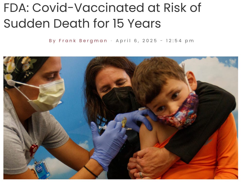 NEWS: FDA: Covid-Vaccinated at Risk of Sudden Death for 15 YearsWilliam MakisMay 11, 2025∙ Paid2013631ShareContinue reading this post for free, courtesy of William Makis.Claim my free postOr purchase a paid subscription.