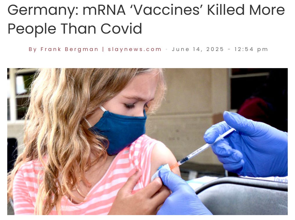 NEWS: Germany: mRNA ‘Vaccines’ Killed More People Than CovidWilliam MakisAug 24, 2025∙ Paid1681934ShareContinue reading this post for free, courtesy of William Makis.Claim my free postOr purchase a paid subscription.