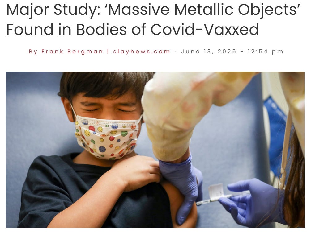 NEWS: Major Study: ‘Massive Metallic Objects’ Found in Bodies of Covid-VaxxedWilliam MakisAug 25, 2025∙ Paid1532731ShareContinue reading this post for free, courtesy of William Makis.Claim my free postOr purchase a paid subscription.