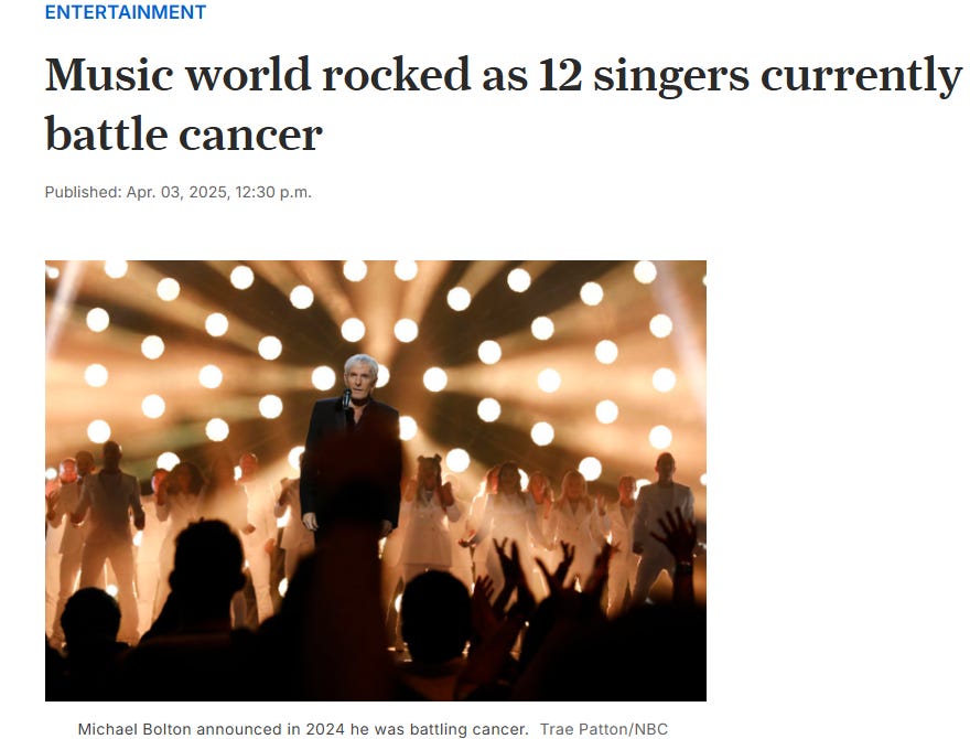 NEWS: Music world rocked as 12 singers currently battle cancerWilliam MakisMay 13, 2025∙ Paid1402814ShareContinue reading this post for free, courtesy of William Makis.Claim my free postOr purchase a paid subscription.