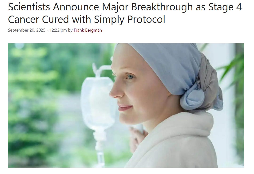 NEWS: Scientists Announce Major Breakthrough as Stage 4 Cancer Cured with Simply ProtocolWilliam MakisSep 24, 2025∙ Paid2938356ShareContinue reading this post for free, courtesy of William Makis.Claim my free postOr purchase a paid subscription.
