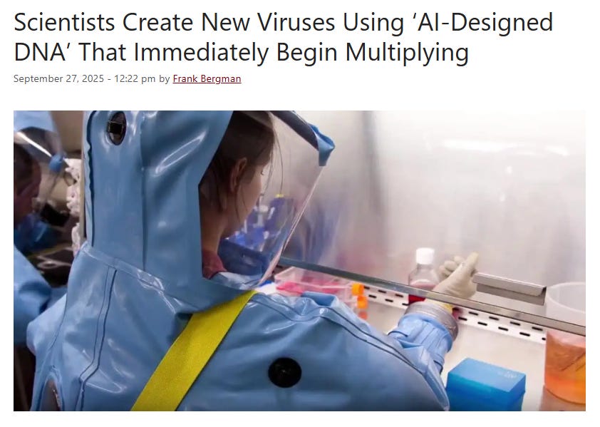 NEWS: Scientists Create New Viruses Using ‘AI-Designed DNA’ That Immediately Begin MultiplyingWilliam MakisNov 27, 2025∙ Paid952015ShareContinue reading this post for free, courtesy of William Makis.Claim my free postOr purchase a paid subscription.