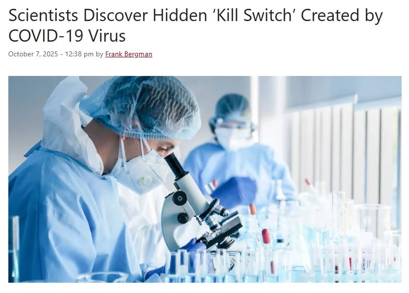 NEWS: Scientists Discover Hidden ‘Kill Switch’ Created by COVID-19 VirusWilliam MakisNov 13, 2025∙ Paid1306015ShareContinue reading this post for free, courtesy of William Makis.Claim my free postOr purchase a paid subscription.