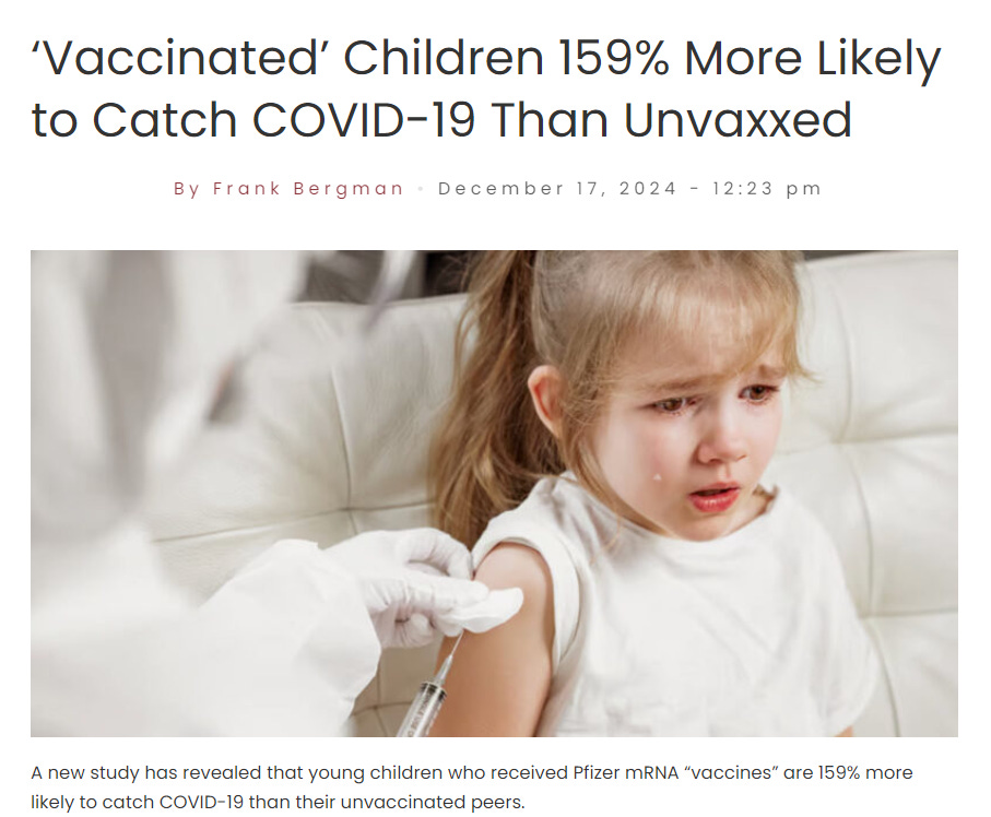 News: ‘Vaccinated’ Children 159% More Likely to Catch COVID-19 Than UnvaxxedWilliam MakisJan 08, 2025∙ Paid1621530ShareContinue reading this post for free, courtesy of William Makis.Claim my free postOr purchase a paid subscription.