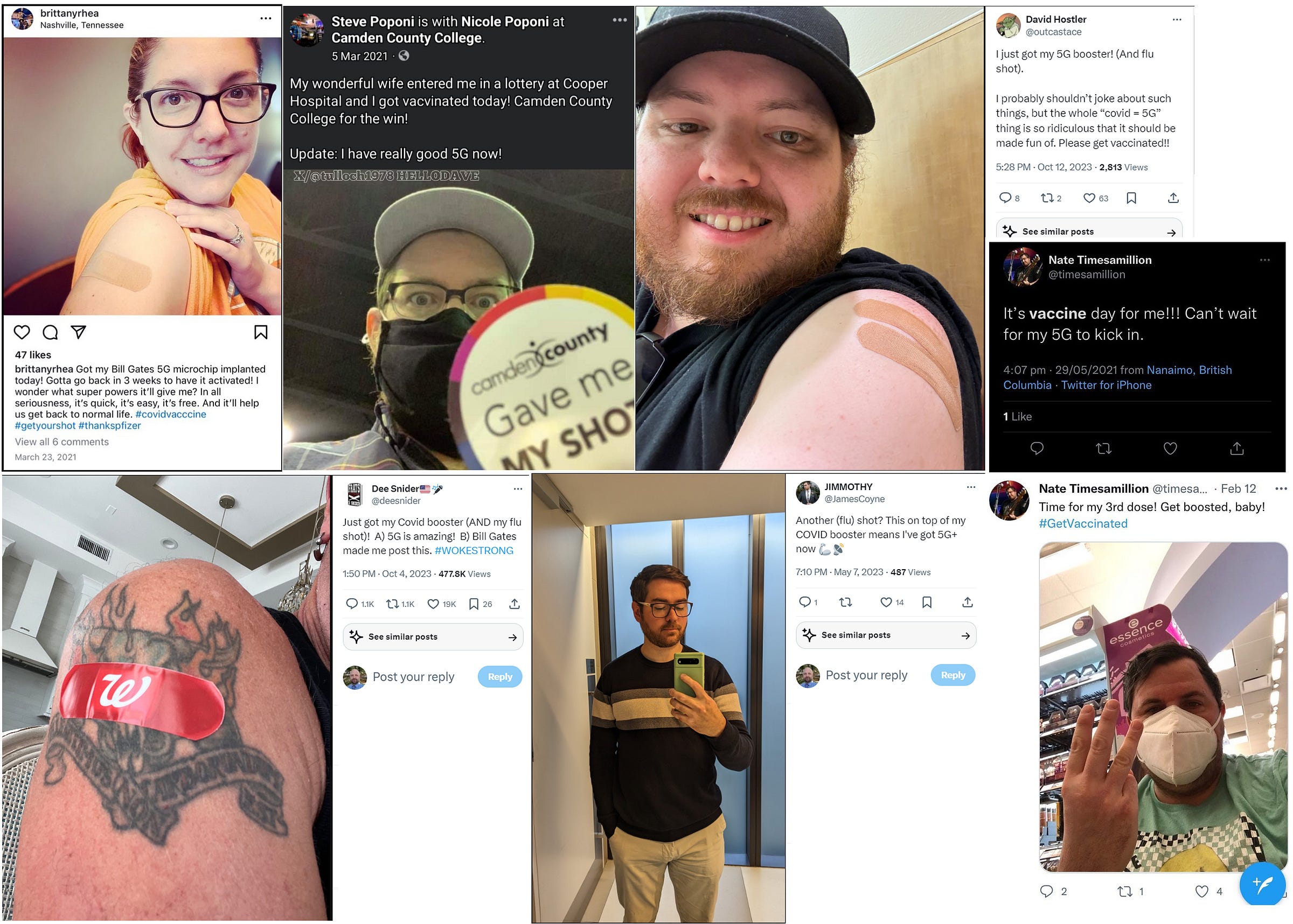 They made fun of 5G after getting their COVID-19 Vaccine. Some of them died suddenly, some had vaccine injuries, some are still alive and well. But why mention 5G at all?