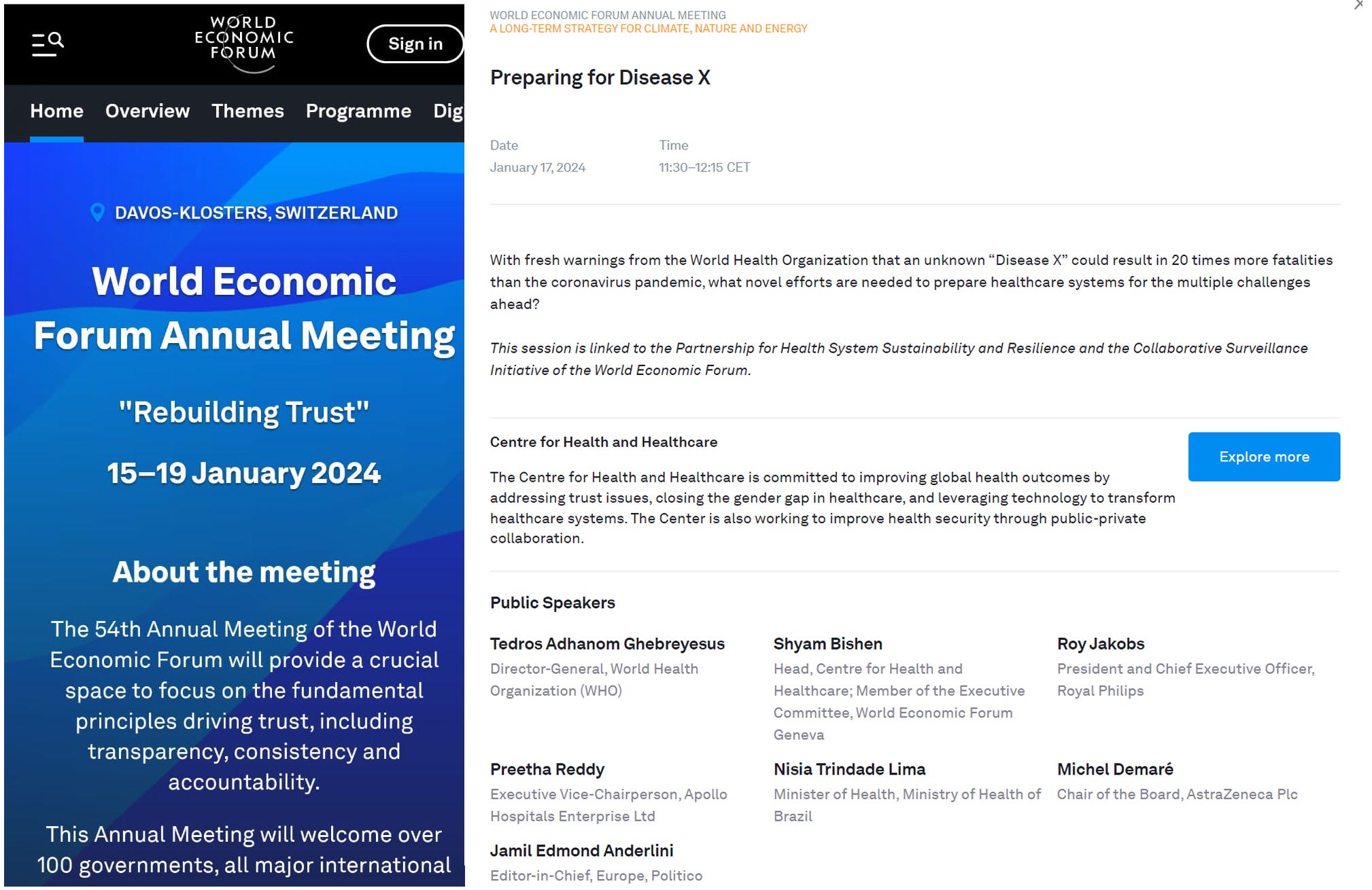 During the Annual Meeting, on Jan.17, 2024, WEF is hosting a “session” titled “Preparing for Disease X”