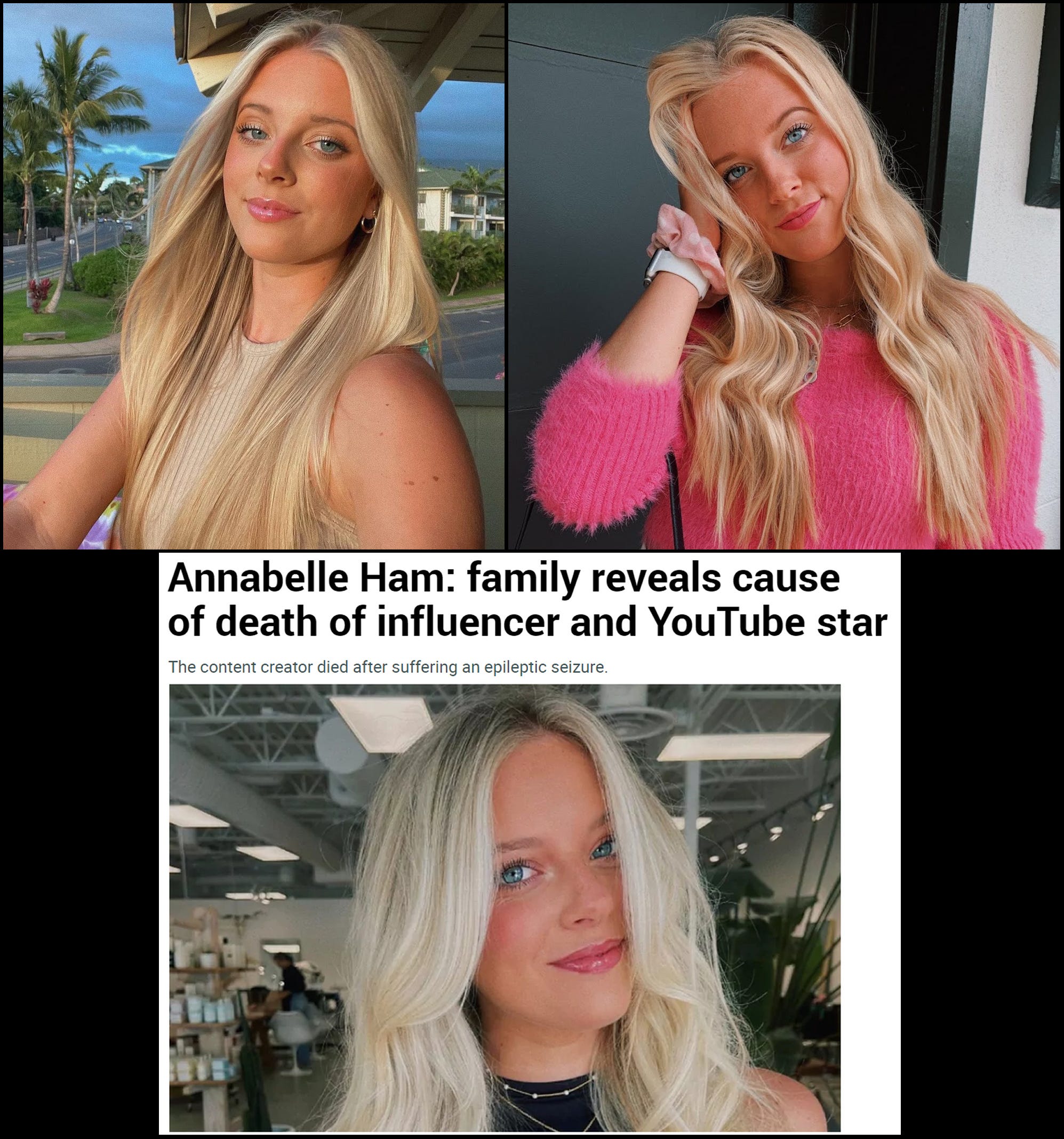 July 15, 2023 - 22 year old Youtube influencer Annabelle Ham died suddenly from a seizure (click here)