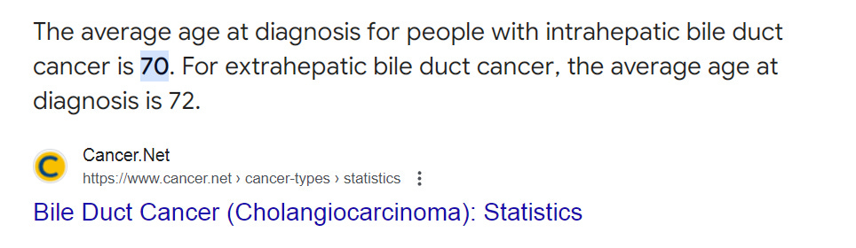 Sydney had an intrahepatic cholangiocarcinoma. (average age at diagnosis is 70).
