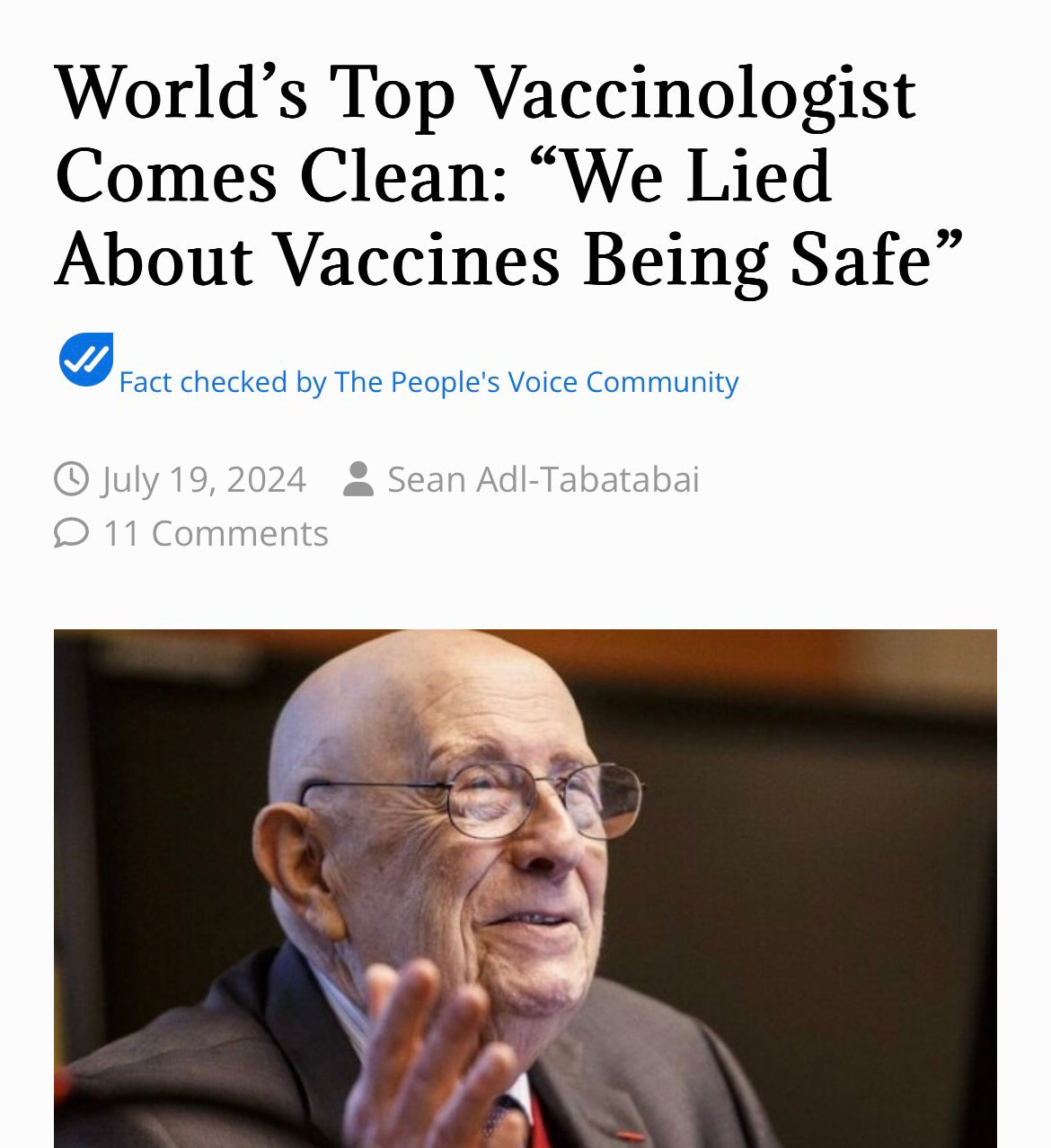 After decades of aggressively promoting the experimental jabs, Dr. Stanley Plotkin is finally admitting that vaccine safety has never been robustly studied as he has long claimed.