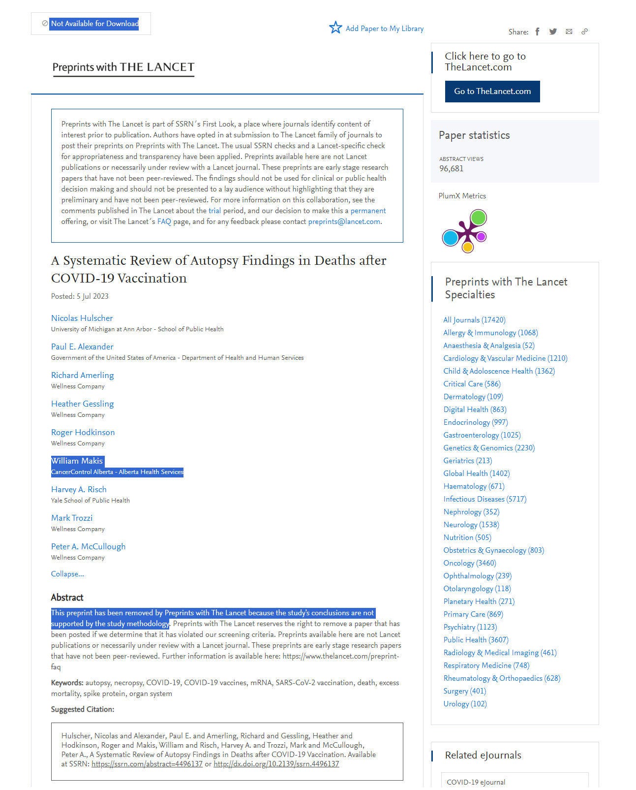 In 2023, The LANCET censored & CANCELLED a ground-breaking COVID-19 Vaccine Injury & Autopsy paper within 24hr after 100,000s downloads.