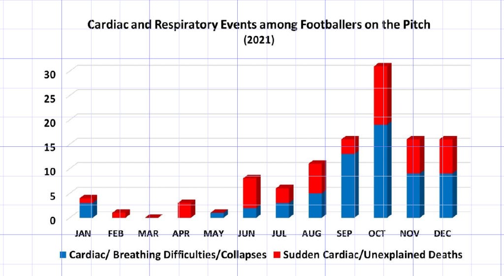 In August 2021, just as the football season started, I reported on collapsing athletes including footballers here, many directly linked with covid vaccination.