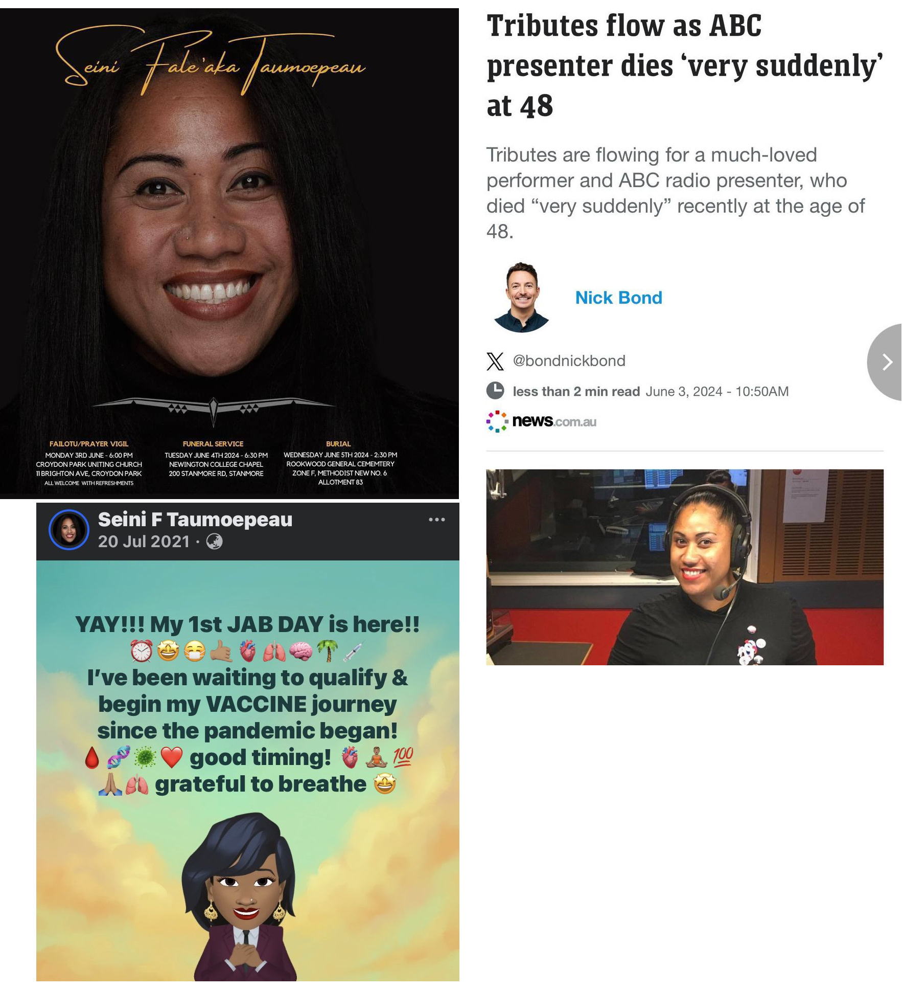 May 31, 2024 (above) - Singer Seini Taumoepeau died very suddenly