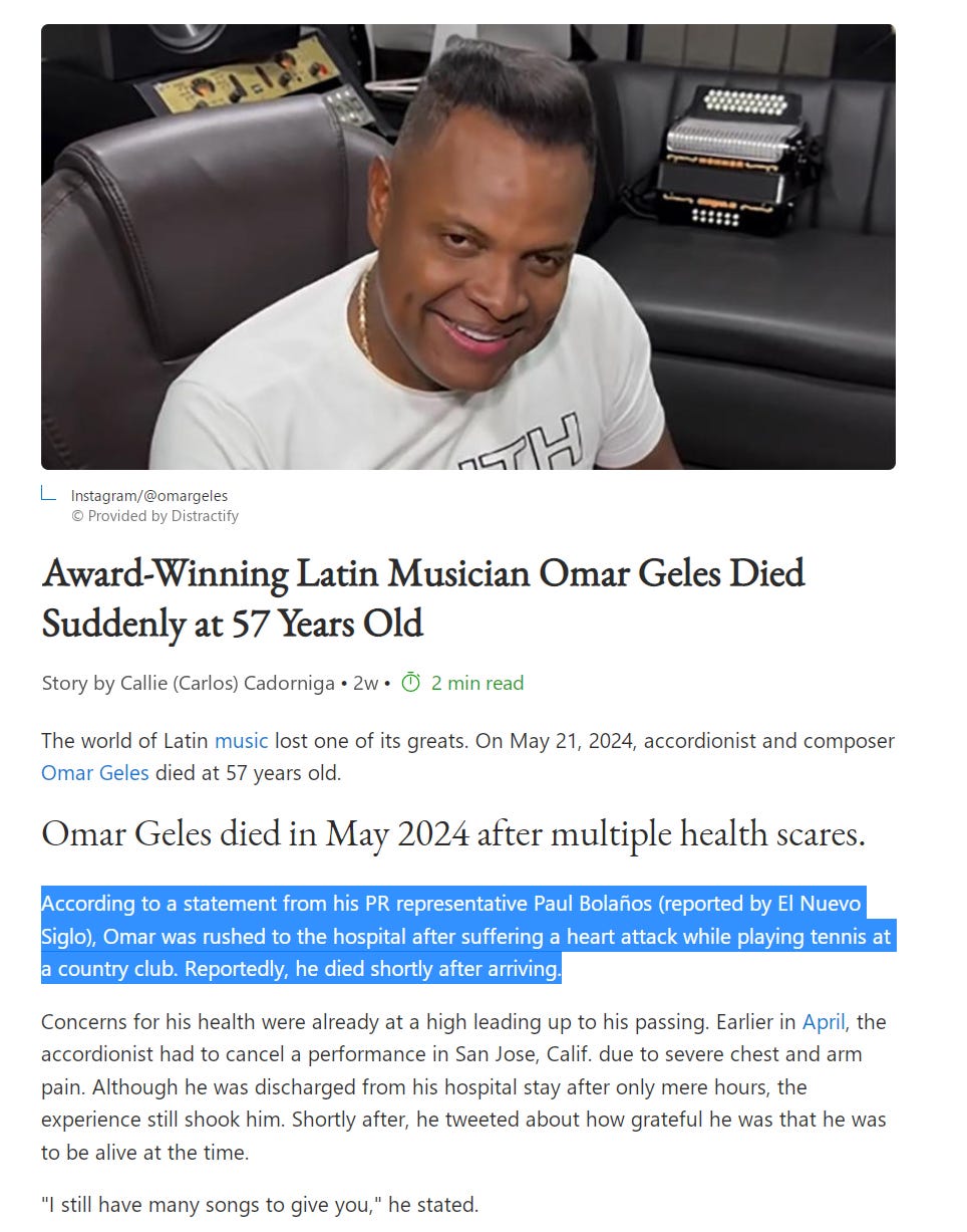 May 21, 2024 - Award Winning Latin Musician Omar Geles Died after suffering a heart attack while playing tennis at a country club.