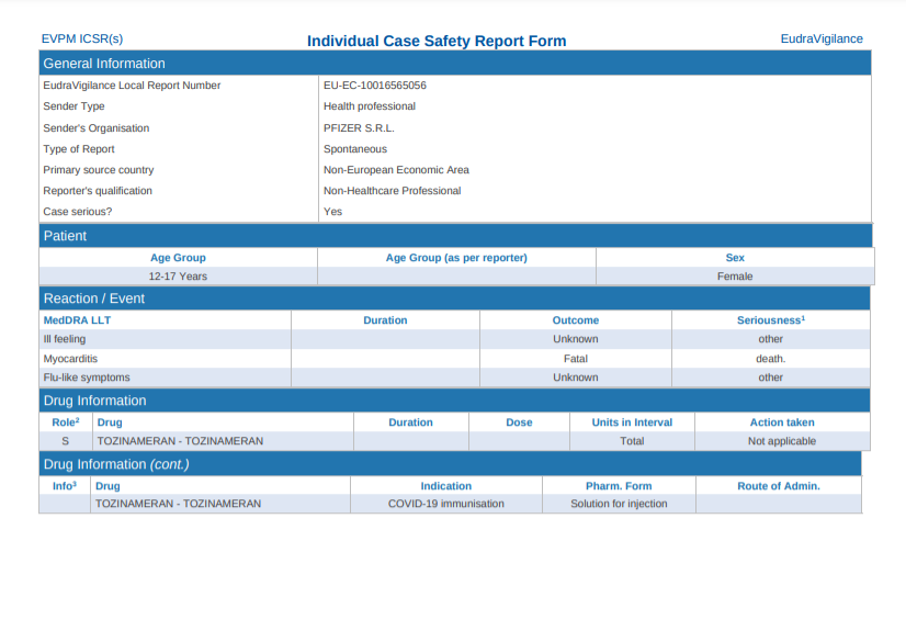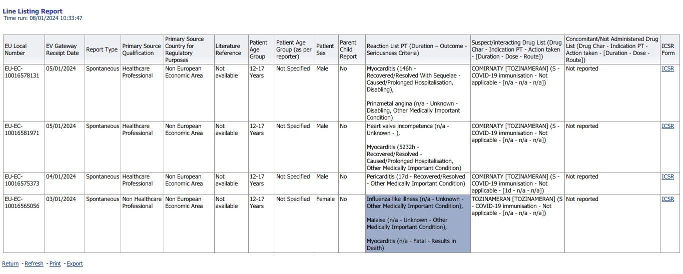 Eudravigilance - first teenager death of 2024 - Myocarditis